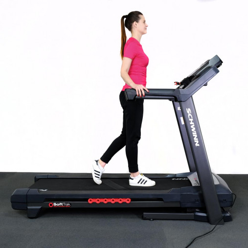 Одной из ключевых особенностей Schwinn 570T является система амортизации SoftTrack™. Она обеспечивает мягкий и плавный ход, снижая нагрузку на суставы и позвоночник. Длина бегового полотна составляет 155 см, а ширина — 49 см, что гарантирует комфортное занятие даже для пользователей с ростом выше среднего. Максимальный вес пользователя — 136 кг, что делает эту модель универсальной для широкого круга людей.