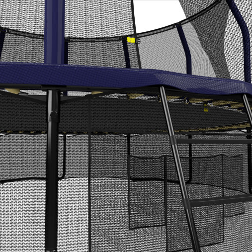Безопасность пользователей стоит на первом месте. Защитный мат шириной 300 мм состоит из 4 слоев premium-класса, обшитых ПВХ материалом плотностью 150 г/куб.см. Он полностью закрывает 108 пружин длиной 178 мм, которые обеспечивают отличную отдачу и комфорт во время прыжков. Максимальный вес пользователя – 170 кг, что позволяет использовать батут как детям, так и взрослым.